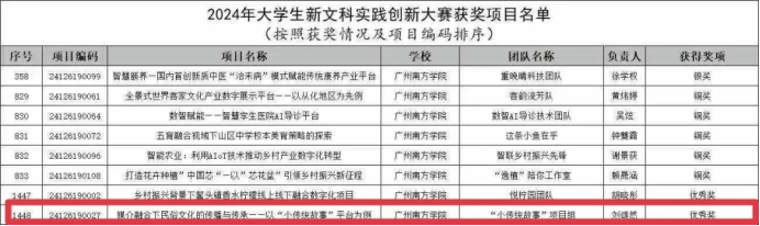 2024年大学生新文科实践创新大赛是一项面向在校大学生的全国性赛事。此赛事涵盖了多个文科相关领域,包括智慧康养、文化产业、数智赋能、美育融合、智能农业、乡村振兴、民间文化传播等。在此次赛事中,我院22级新闻学专业的刘颂然同学带领的“小传统故事”项目组凭借“媒介融合下民俗文化的传播与传承——以‘小传统故事’平台为例”项目获得优秀奖。该项目聚焦于民俗文化传播,通过特定平台助力小传统故事传承,展现了学生在民俗文化领域的创新实践能力。