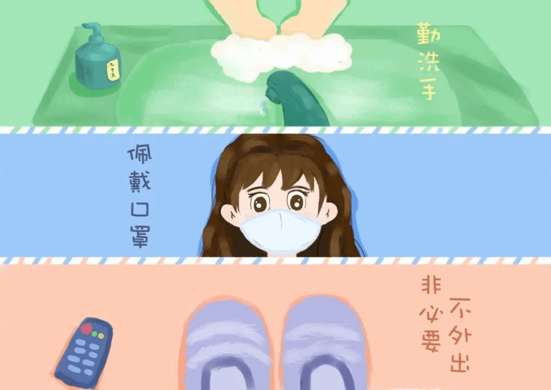 “抗击疫情,从我做起”。本作品以“第一视角”来描绘作为一名普通公民的抗疫行动——“勤洗手”、“佩戴口罩”、“非必要不出门”。作品旨在呼吁大家从自我做起、从身边的小事做起,为抗击疫情出一份力。