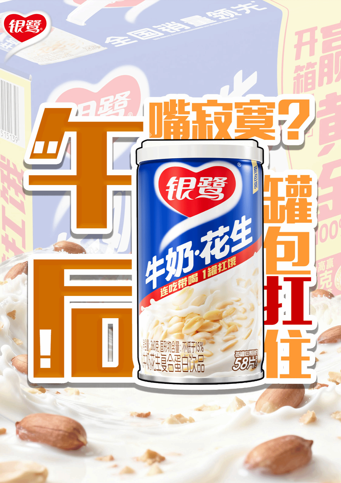 早八喝一罐,提高高效生活的底气,午后喝一罐,传递拒绝摆烂的能量,深夜喝一罐,表达“熬夜时也要好好照顾自己”的情感诉求。通过这种情感绑定,更是让让银鹭牛奶花生从“扛饿食品”升级为“承载生活态度的符号”。