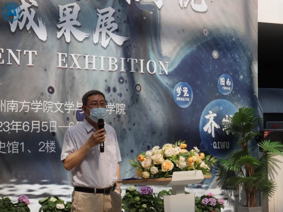 孙立院长在致辞中介绍了“齐物”展的来之不易,因为疫情的反复,停滞了3年的设计展览终于得以举办。孙院长介绍到,此次展览是学院近3年同学们的毕业设计作品和优秀作业的集中展示,他希望通过此次展览起到交流沟通的效果,同时也是对来自不同年级专业同学们的激励鼓励,期待同学们创作出更多优秀作品。