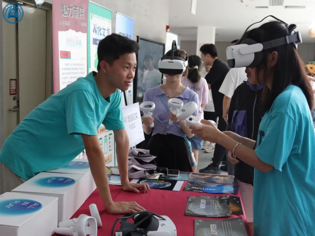 虽天气炎炎,但是师生们对此次展览兴致不减,接踵而至,展场内人流如潮。展览现场,每个区域都有专属讲解员,他们或是热心的学生志愿者,或是作品的创作者,为来观展的老师、同学们讲述这些作品背后的故事和创作历程。