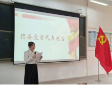 预备党员代表徐子惠同志上台发言,表示在今后将继续坚定理想信念,努力加强党性修养,不断增强党性观念,时时刻刻发挥好模范带头作用,早日成为一名思想坚定、作风过硬、工作积极的党员。