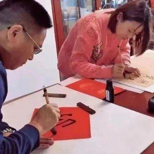 妙笔生花送祥瑞,翰墨飘香迎新春。同志们挥毫泼墨,将新春的祝福和美好的祝愿融入一个个“福”字和一副副寓意吉祥的春联当中。他们或手写福字,蘸墨、起笔、收笔,一起一落,字体圆润细腻,新迹一幅幅红纸上散发着淡淡墨香,形体各异、饱含神韵的“福”字跃然纸上;或书写对联,随着笔锋的或顿或扬,在毛笔尖下挥洒出对辞旧迎新的期盼,描绘出大家对美好生活的憧憬。