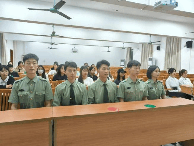 一身戎装,一生荣光!军旅一程,蜕变成长。从校园走进部队,是一次大胆的探索,从部队走进校园,是一场全新的开始。退役学生张晨光同志结合退役复学后的自身经历,告诉大家退伍并不是生活的终点,而是一个崭新篇章的起点;许嘉毅同志分享了他的军旅日常生活,并告诉大家,一旦做出了选择,就要全力以赴去热爱、去追求、去实现;林颖斌同志则通过他在部队里发生的两件特殊事情,向我们诠释了责任与担当的真正含义;许思倩同志于两年的军旅生活中,不仅荣获了优秀称号,还深化了对党政理论知识的理解;廖金勇同志在军旅生涯的过程中,深刻理解了纪律和责任的内涵,在今后的生活中,他将继续用自己的行动诠释着对国家的忠诚和对人民的热爱。