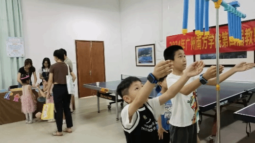 “叮叮”声响起,小朋友们立刻进入紧张而激动的状态。他们握紧双手,全神贯注地盯着掉落下来的棒子,试图凭借眼速和手速准确接住。整个过程充满了不确定性和挑战性,小朋友们需要时刻保持警惕和反应迅速。