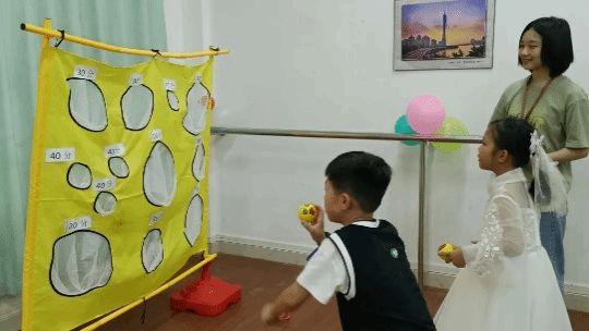 “咚!”又一个球成功投入球网中,小朋友们站在离自己一米五处的起点欢呼,他们全神贯注地瞄准目标,用力掷出球,希望能够一击命中。