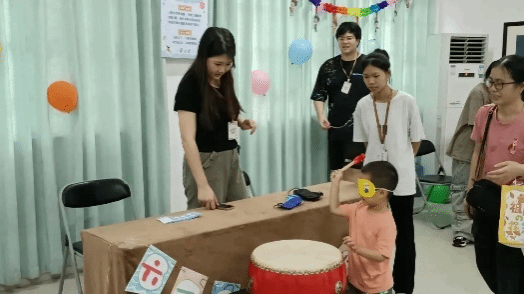 在游戏过程中,小朋友们需要戴上眼罩,蒙住眼睛,接过鼓槌,在黑暗中一步步走向前方的鼓。他们会感到害怕和迷茫,但在爸爸妈妈的鼓励和引导下,他们会逐渐克服内心的恐惧和不安,勇敢地向前走去。当成功敲响鼓时,都会引来一阵欢呼和掌声。