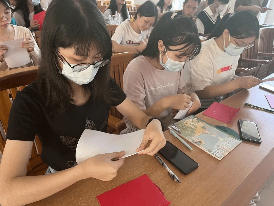 最后,同志们将最终完成的信件,装进赤红信封中,每封都饱含着真挚的情感,每封都表达着同志们的责任与担当。