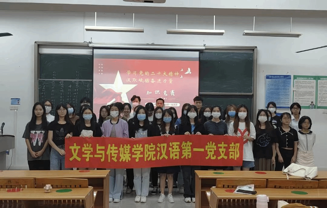 为深入学习贯彻习近平新时代中国特色社会主义思想,以实际行动学习宣传贯彻党的二十大精神,2022年11月12日晚上,汉语第一党支部以“学习党的二十大精神,汲取砥砺奋进力量”为主题,在1教104开展了知识竞赛党日活动。
