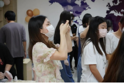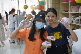 明月寄思念,月饼忆乡情。第三项活动便是——冰皮月饼制作。揉面团、包馅、滚圆、压模、脱模、成形……工作人员耐心地给大家讲解制作月饼的方法和技巧,并进行示范。在工作人员的指导下,大家有条不紊地开始现场制作。工作人员钟惠宁表示“之前主要是在过节的时候,在家跟着我姐姐学着做的,并且有手工制作月饼的经验,所以在指导起来会游刃有余一些。”在一双双巧手的揉捏下,一个个精致的月饼呈现在了大家的眼前,现场充满了和谐友爱的浓厚氛围。
