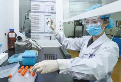北京国药集团中国生物新冠疫苗生产基地,工作人员对新型冠状病毒灭活疫苗样品进行纯度检测