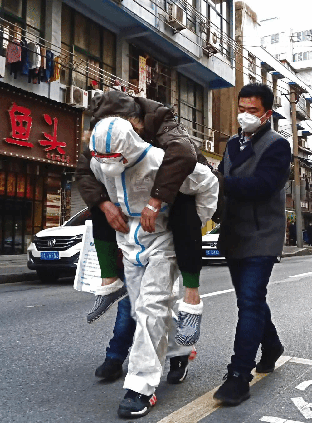 湖北省武汉市江岸区大智街派出所民警邵玉春背着病患准备送医