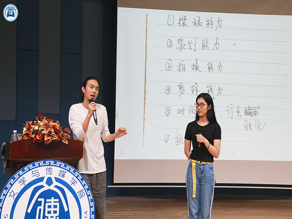分享会开始前,卢哲颢师兄邀请我院卢同学就“你未来想要从事什么职业或者你的梦想是什么”这一问题进行回答。随后,卢师兄分别从撰稿、策划、拍摄、剪辑能力,时尚品味、行业嗅觉以及执行力等方面让卢同学进行自我能力评价。通过同学们的回答,卢师兄展开了当晚的经验分享。