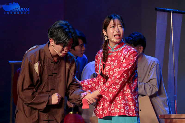 金唛司仪队带来的诗朗诵《驼峰之魂》用铿锵有力的语调诉说着战争时期那些为国牺牲的战士们的光辉事迹,令人为之震撼。艺术中心南伶戏剧团的相声《东北往事》以夸张的表情幽默地讲述了东北的革命历史,文传新生合唱团带来的《打起手鼓唱起歌》则以合唱形式带领观众领略了西北文化。紫阳戏剧社则的话剧《红绳记》改编自话剧《白毛女》,一场悲剧引人感叹,而小品《如此追星》又带给观众最质朴的家庭温暖。