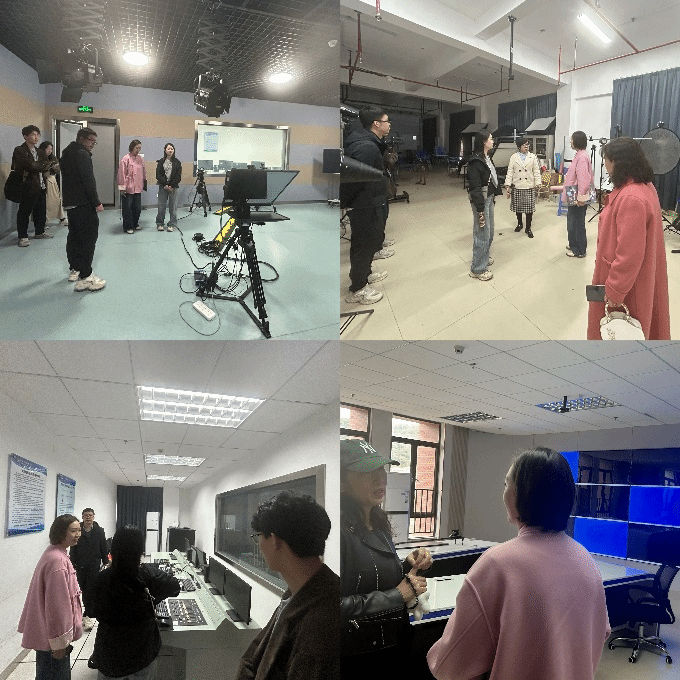 会后,双方一同参观了我院一系列专业实验室,包括南方融媒体中心、虚拟演播实验室等,深入了解各类专业实践设备及其实践教学内容。
