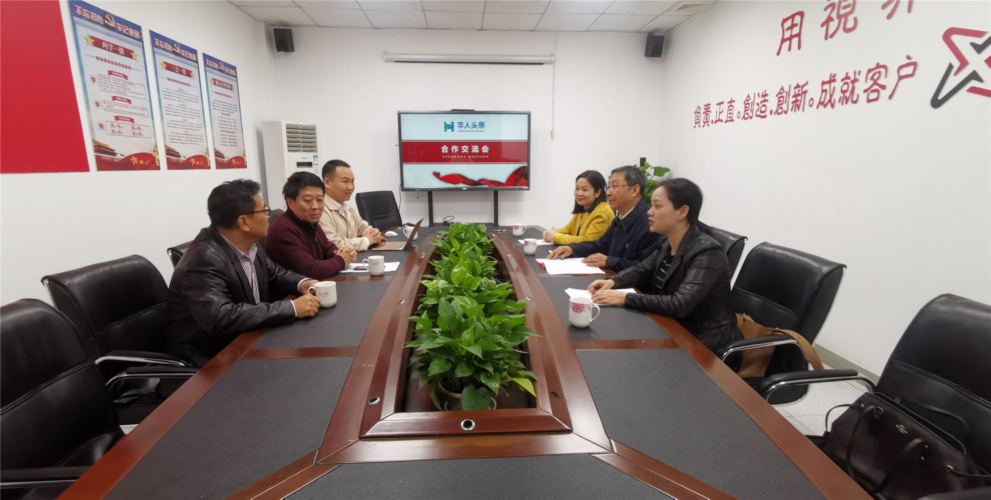2019年12月12日上午,我院孙立院长和新闻与新媒体系系副主任张晓丹、学院办公室主任李娜赴华人头条广东运营中心实地考察交流,签署校企合作框架协议,商讨“华人头条-中山大学南方学院工作站”建设项目,华人头条广东运营中心总裁戴剑平、副总裁余米、市场部总监武冬出席了座谈会。