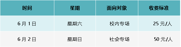 注:本校专场25元/人,社会专场50元/人(学生若报考社会专场,费用50元/人)