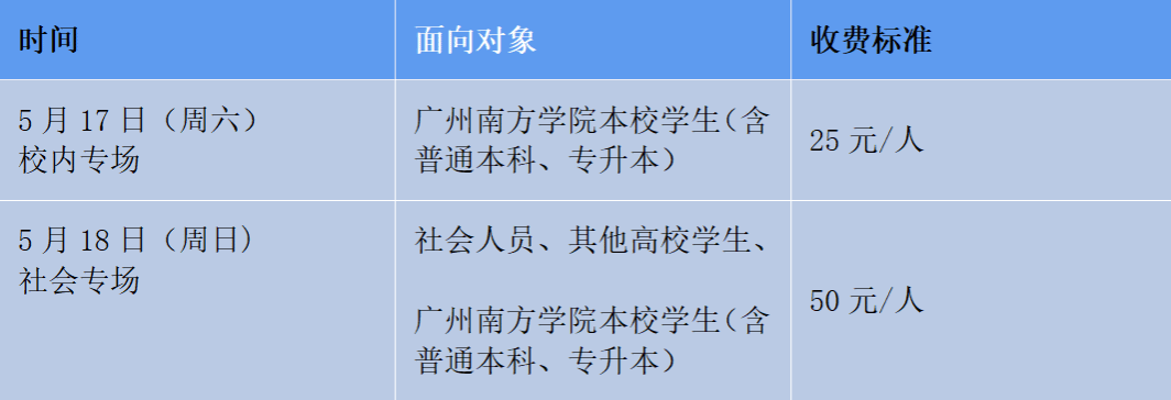 注:威廉williamhill本校学生(含普通本科、专升本)若报名5月18日(周日)社会专场,缴费标准为50元/人。