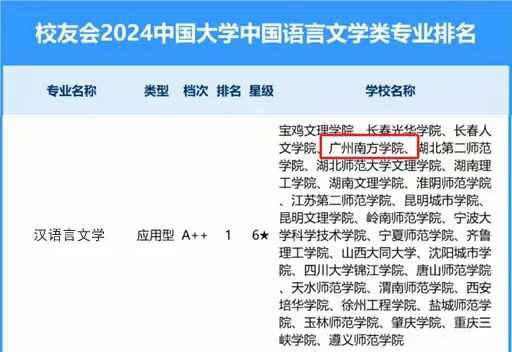 汉语言文学 A++ 6星级 全国顶尖应用型