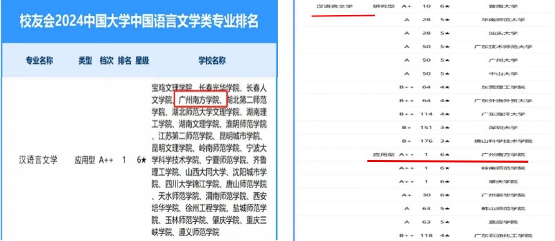 汉语言文学专业于2006年首次招收生,是广东省本科一流专业建设点、广东省重点专业、广东省综合改革试点专业。2017年至2024年,汉语言文学专业连续8年在艾瑞深校友会中国大学专业排名榜中获评应用型专业A++以上档次,六星级,全国顶尖应用型专业,持续位列全省首位、全国第一。