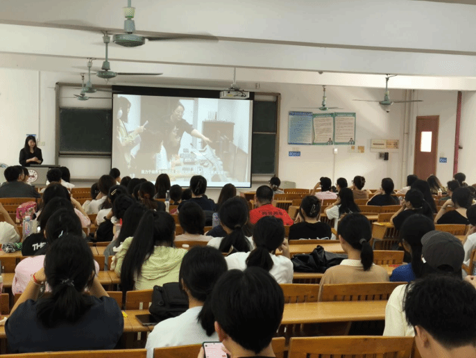 原月老师和钟雪燕老师从学院简介、专业课程、校园实务、就业方向、以及健康和安全教育等方面进行宣讲。其中安全教育从卫生防护、交通安全、建筑安全、食品安全、艾滋病教育、预防电信诈骗等几个方面,通过多个真实的案例解读,逐个分析校园安全中的经验教训。老师们提醒新生同学们安全无小事,希望同学们擦亮双眼,时刻保持警惕,注意个人卫生和人身财产安全。