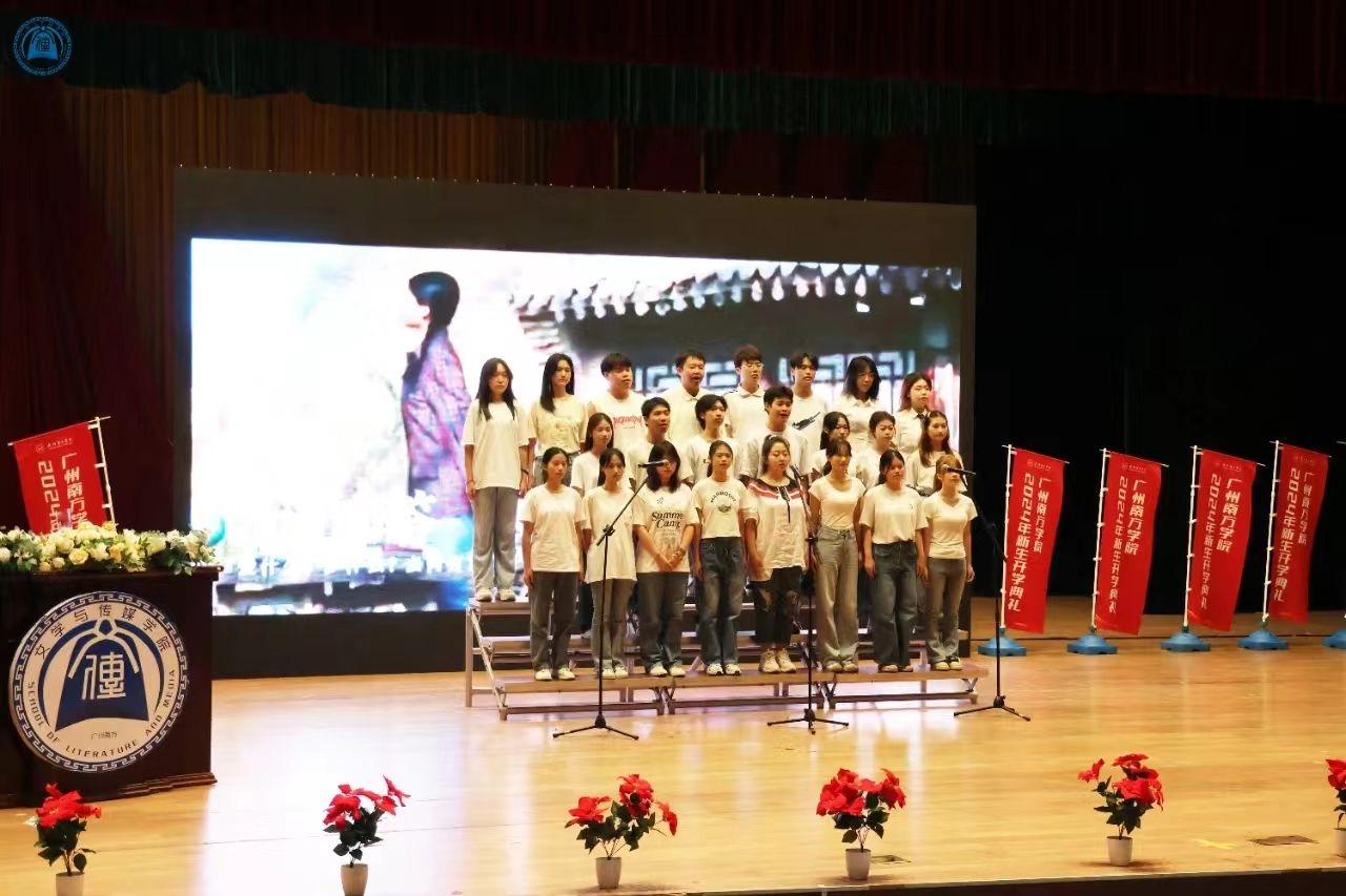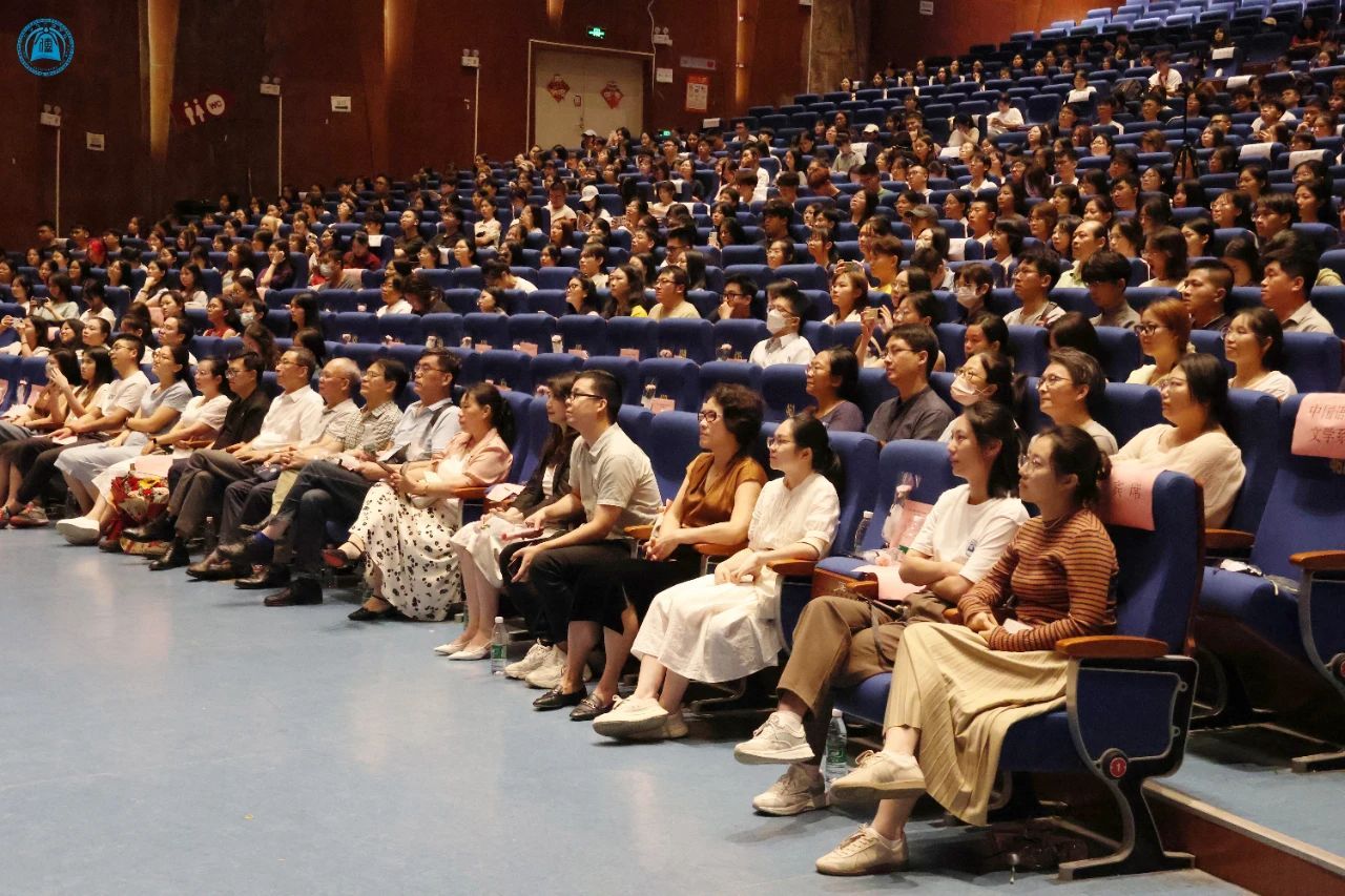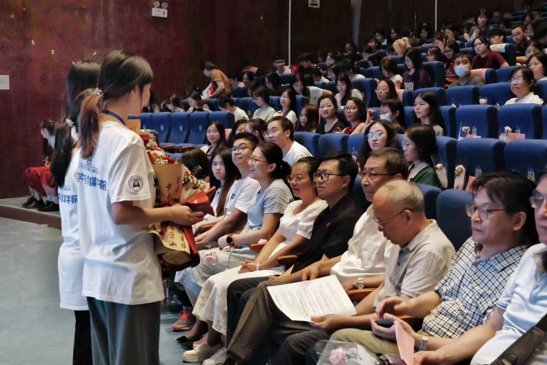 本次开学典礼恰逢教师节,这无疑为活动增添了一抹特别的色彩。此时,银幕上开始播放教师节祝福视频,画面中满是学生们的笑脸和真诚的祝福。随后,代表着感恩与敬意的花束被送到了老师们手中。借此珍贵的机会,向学院的每一位老师表达最真挚的感谢与祝愿。