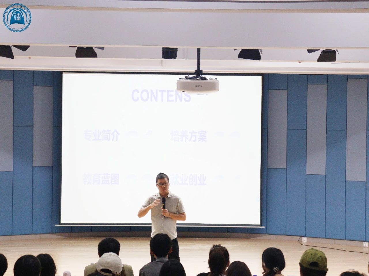 游鸽老师介绍,2016 年创设的网络与新媒体专业,历经8 年发展初具规模,成全国顶尖应用型专业。2023 和 2024 年校友会评比中连续两年居全国首位,获评 A++档次、6 星级专业。该专业就业率每年达 97%左右,教学软、硬件设施一流,设有融媒体中心、数字文化与传媒研究等实训室及多个工作坊,满足同学们校内实训要求,供同学们选择参与项目开发或创新创业实践。此外,网络与新媒体专业师资雄厚,指导学生参与竞赛成果丰硕,以此提升学生专业技能和综合素质,为学校赢得荣誉。最后,游鸽老师详细讲述了专业设置产品设计与运营、数智媒体与人工智能应用两大方向模块课程,具文理交叉融合等特色,秉持“把专业建在产业链上”理念,紧扣实战突出专业能力训练。