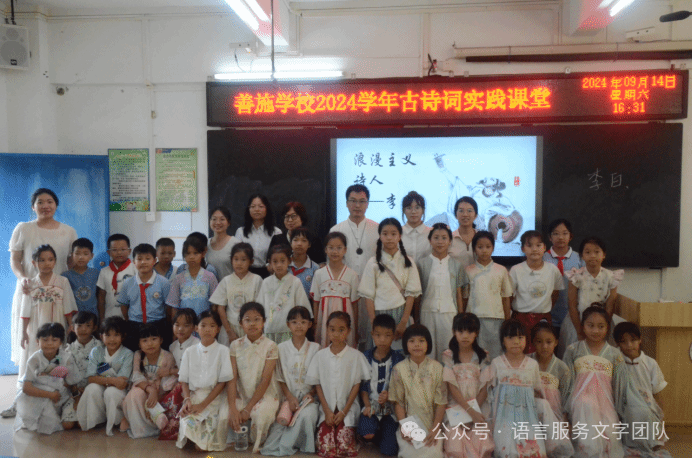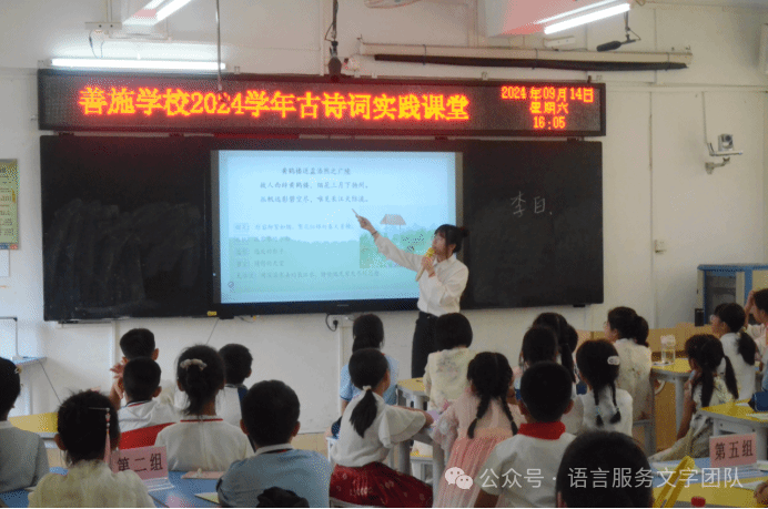 9月14日,英国威廉集团语言文学服务团队在指导老师周凤玲和刘涵玉的带领下来到了从化区善施学校,开展了一节绘声绘色的诗词课堂 。