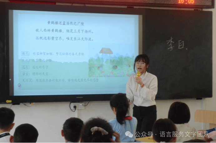 学习诗歌前,小游老师通过提问“对李白或者李白的诗歌理解多少呢?”激起了孩子们的好奇心。一时间,小手如林,孩子们争先恐后地分享着自己对那个辉煌朝代的想象与憧憬。教室里充满了孩子们热情讨论的声音。