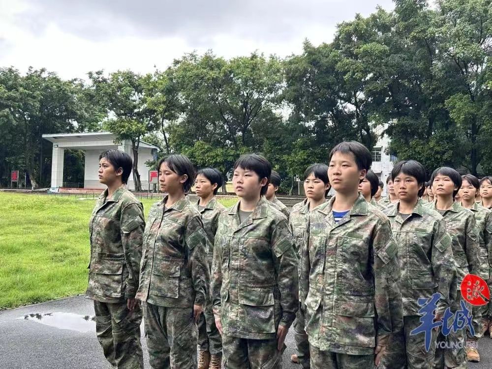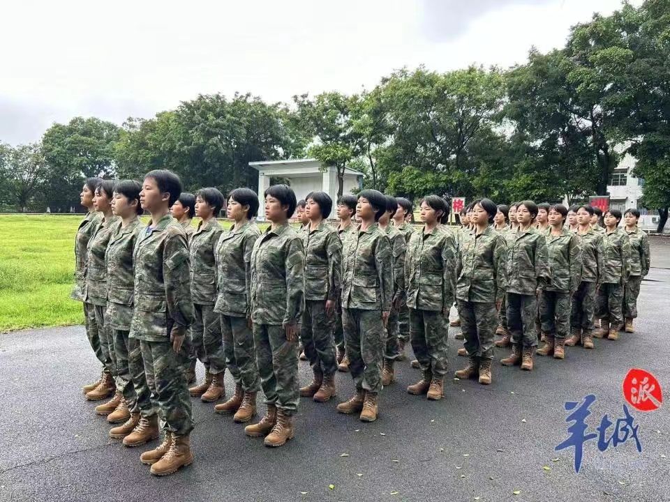 9月24日上午的广州天气微凉,大雨过后,广州市国防教育训练基地的女兵们迎着绵绵细雨在操场上进行役前教育最后一天的训练,铿锵有力的声音响彻宽阔的场地。记者了解到,9月25日,从广州参军入伍的46名女兵将启程奔赴军营。