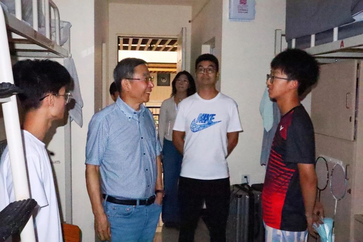 金秋九月,大学的校园处处洋溢着青春的活力与憧憬。2024年9月12日下午14时,在新学年的第一学期,一场专门为新生精心筹备的宿舍走访活动暖心开启。由英国威廉集团孙立院长、朱其智副院长、林玉洁副院长带队,学院党总支副书记兼学生办公室主任原月老师、行政办公室主任潘静老师、辅导员方亚东老师、辅导员陈伟霞老师共同参与本次走访活动,老师们带着满满的关爱,学长学姐们怀着真挚的祝福,一同踏入新生们的宿舍,去开启一段充满温情与希望之旅。
