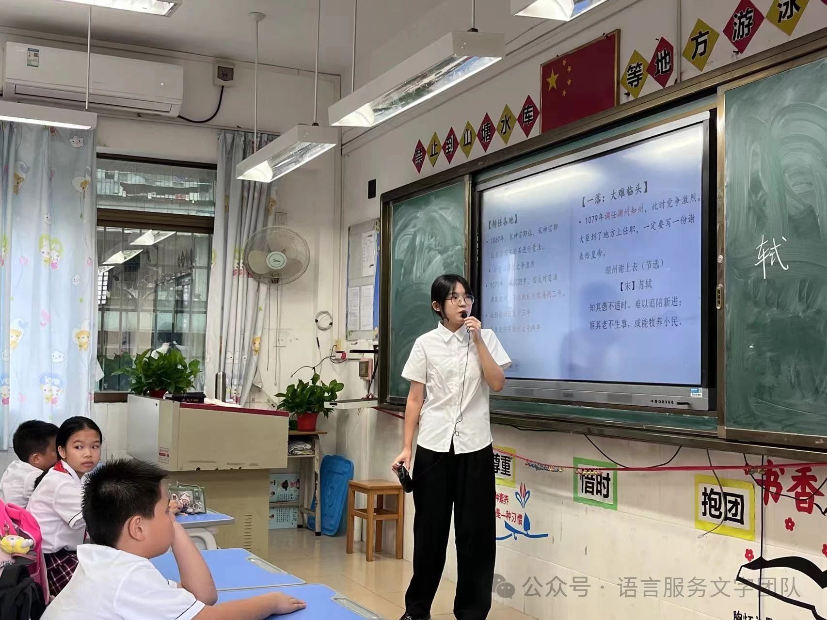 随着铃声的悠扬响起,同学们陆续进入教室,脸上带着期待和好奇,准备开始今天的课程。今天的小老师是来自22达人中文班的刘原宁同学,让我们跟随小刘老师一起走进苏轼的世界,在苏轼的文学世界中,感受那份超越时空的魅力。