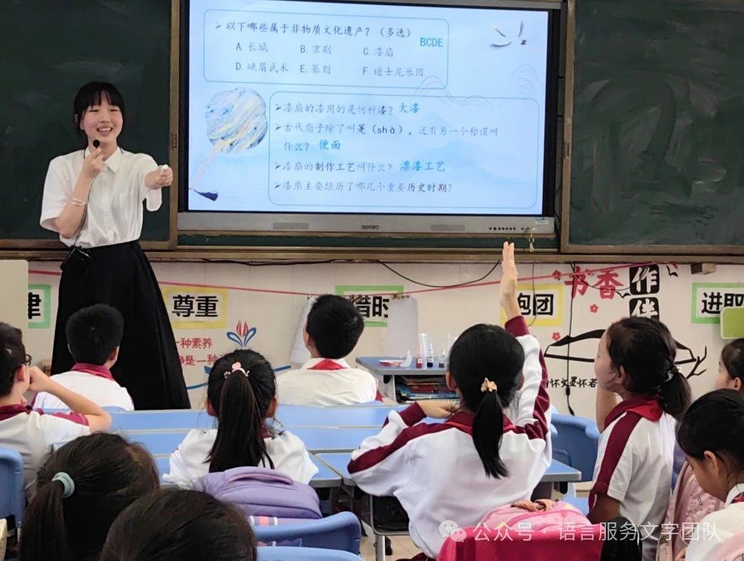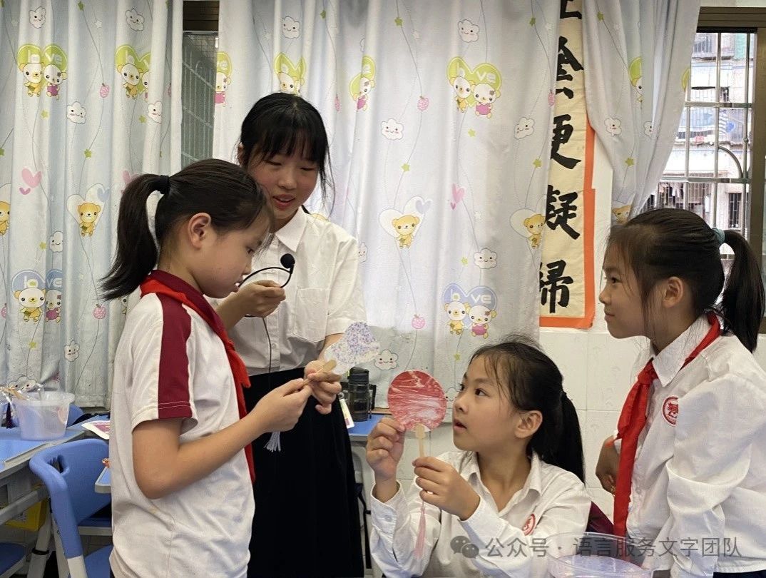 9月25日下午,文传与传媒学院语言文字服务团队的同学们在钟依琼老师的带领下前往从化区流溪小学,给同学们带来了一堂妙趣横生的非遗课程。