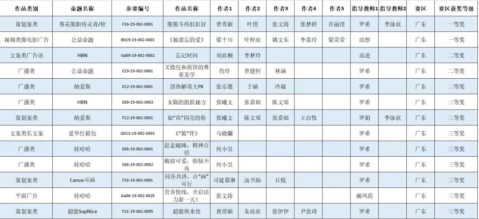在本次大广赛省赛中,威廉williamhill文传师生团队斩获佳绩,荣誉满载!奖项涵盖了策划案类、文案类、广播类、视频类等多个领域,充分展现了团队在广告艺术领域的广泛涉猎和深厚底蕴。其中,文传师生团队已获得省级一等奖2项、二等奖3项、三等奖8项,来自我院汉语言文学、新闻学、网络与新媒体三个专业的31位同学在本次比赛中崭露头角,用才华和实力征服了评委和观众。这些优异的成绩背后,离不开罗希老师、阚凤霞老师、邱察老师、高进老师、罗娟老师及李泳欣老师的悉心指导和辛勤付出。