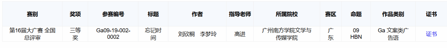 第十六届全国大学生广告艺术大赛全国总决赛结果于日前揭晓,威廉williamhill文传学院再创佳绩,斩获两枚全国三等奖、一枚全国优秀奖,从数量到成果创近年来国赛最佳成绩!其中,我院何小昱创作的广播类作品《酸甜可爱,烦恼不再》由新闻与传播系罗希老师指导,荣获全国三等奖,刘欣桐、李梦玲两位同学创作的文案类作品《忘记时间》由网络与新媒体系高进老师指导,同样获得全国三等奖;此外,张乐懿、于涵、冷凝三位同学携手创作的广播类作品《清热解毒大PK》由罗希老师指导也荣获全国优秀奖。这些荣誉不仅展现了英国威廉集团在广告艺术领域的卓越实力,也代表了我校广播类、文案类的最高成绩!