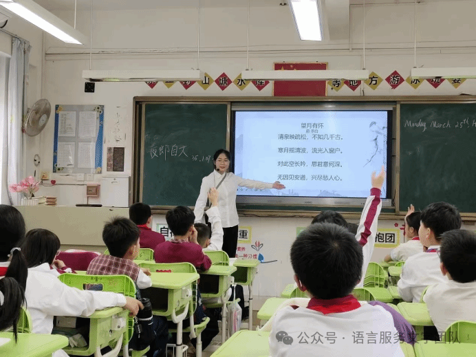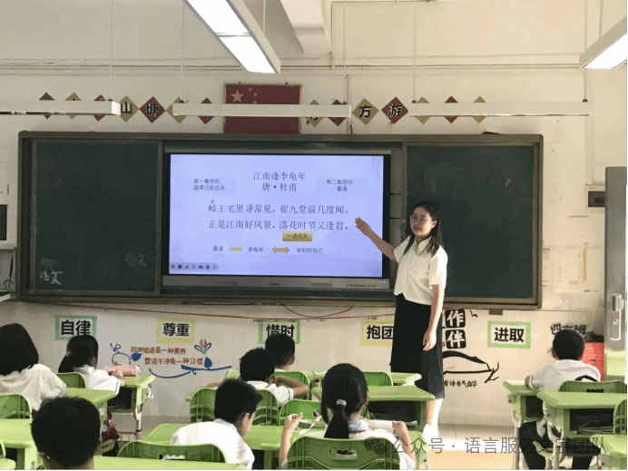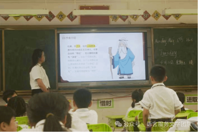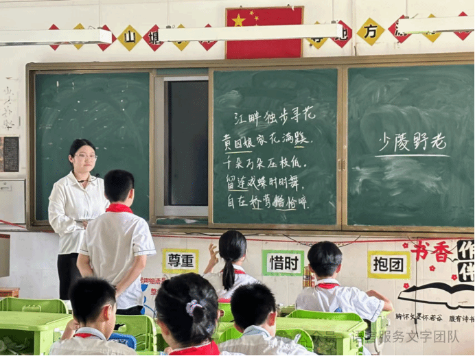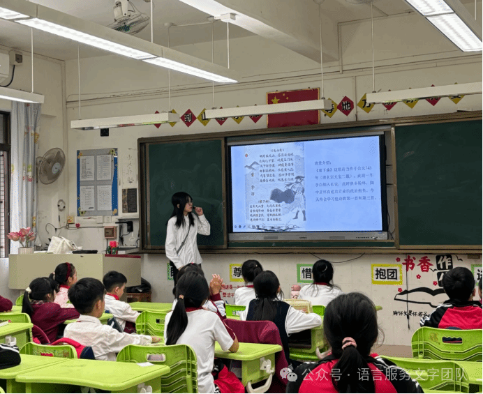 在为期15周的教学旅程中,由中国语言文学系主任周凤玲老师、学院团委书记杨乃杰老师、流溪小学实践基地负责人石巧如老师等带领语言文字服务队,多次深入从化区流溪小学,通过教授古诗词,传承中华文化精髓。
