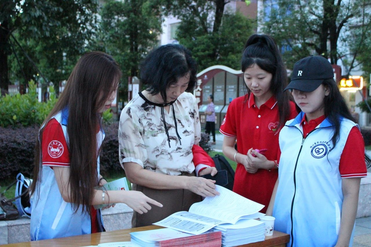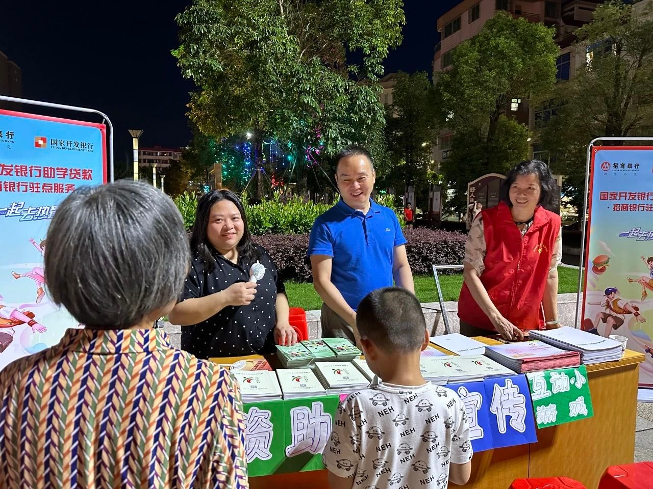 仲夏之夜,居民们纷纷走出家门,开始一天的休闲时刻。宣传活动开始前队员们提前深入学习和了解国家资助政策,做好充足的准备后前往摆摊地点。此次宣传我们选择了人流量较大的新兴县文化广场,本次活动得到了新兴县教育局的大力支持,为我们提供了场地、桌椅和宣传物品,为我们本次宣传活动顺利进行提供了保障。