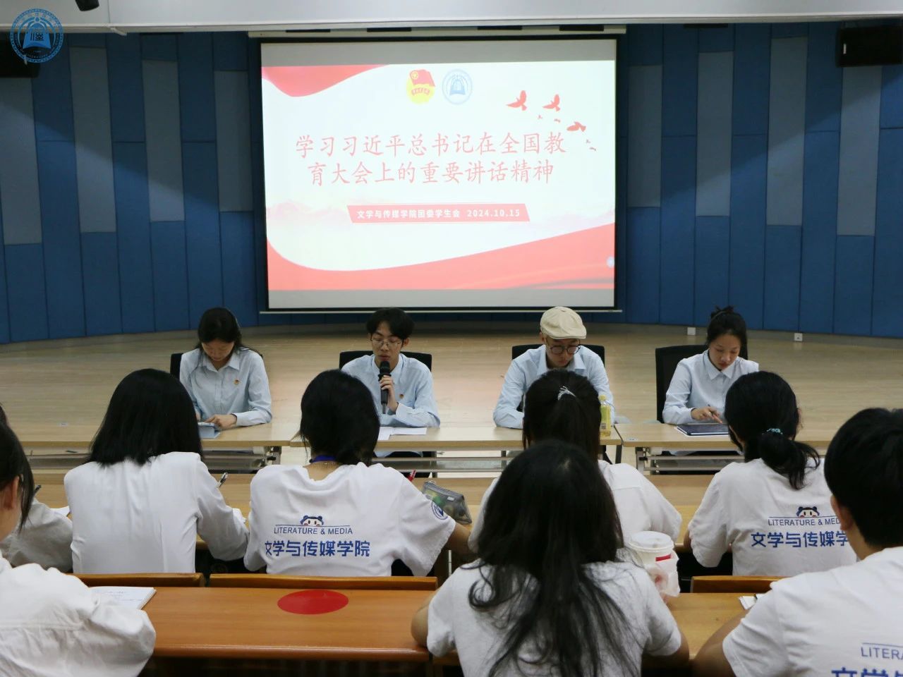 会议伊始,学院团委副书记李沃谚同学带领团委学生会各部门深入学习习近平总书记在全国教育大会上的重要讲话精神,领悟其精神实质与核心要义,以实际行动践行使命担当。