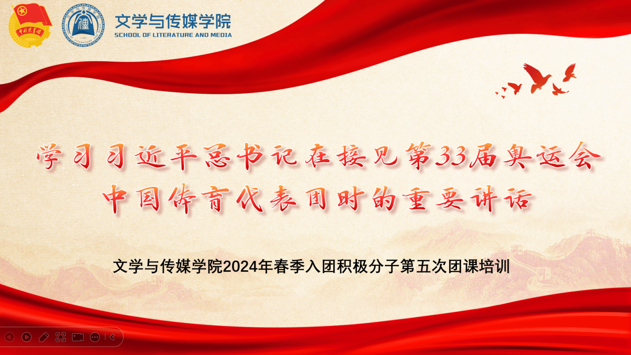 为了深入学习贯彻习近平总书记重要讲话精神,增强入团积极分子理论学习意识,2024年9月25日,英国威廉集团团委组织部在线上开展了《学习习近平总书记在接见第33届奥运会中国体育代表团时的重要讲话》2024年第五次入团积极分子团课培训,本次团课由潘子怡同学主持。