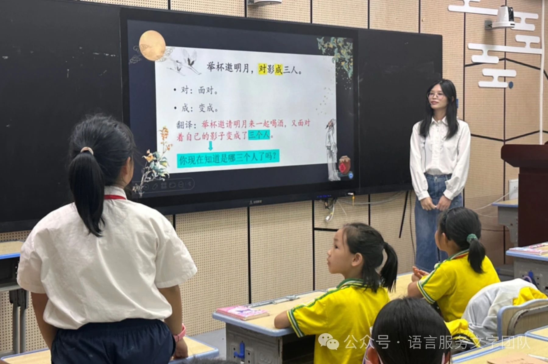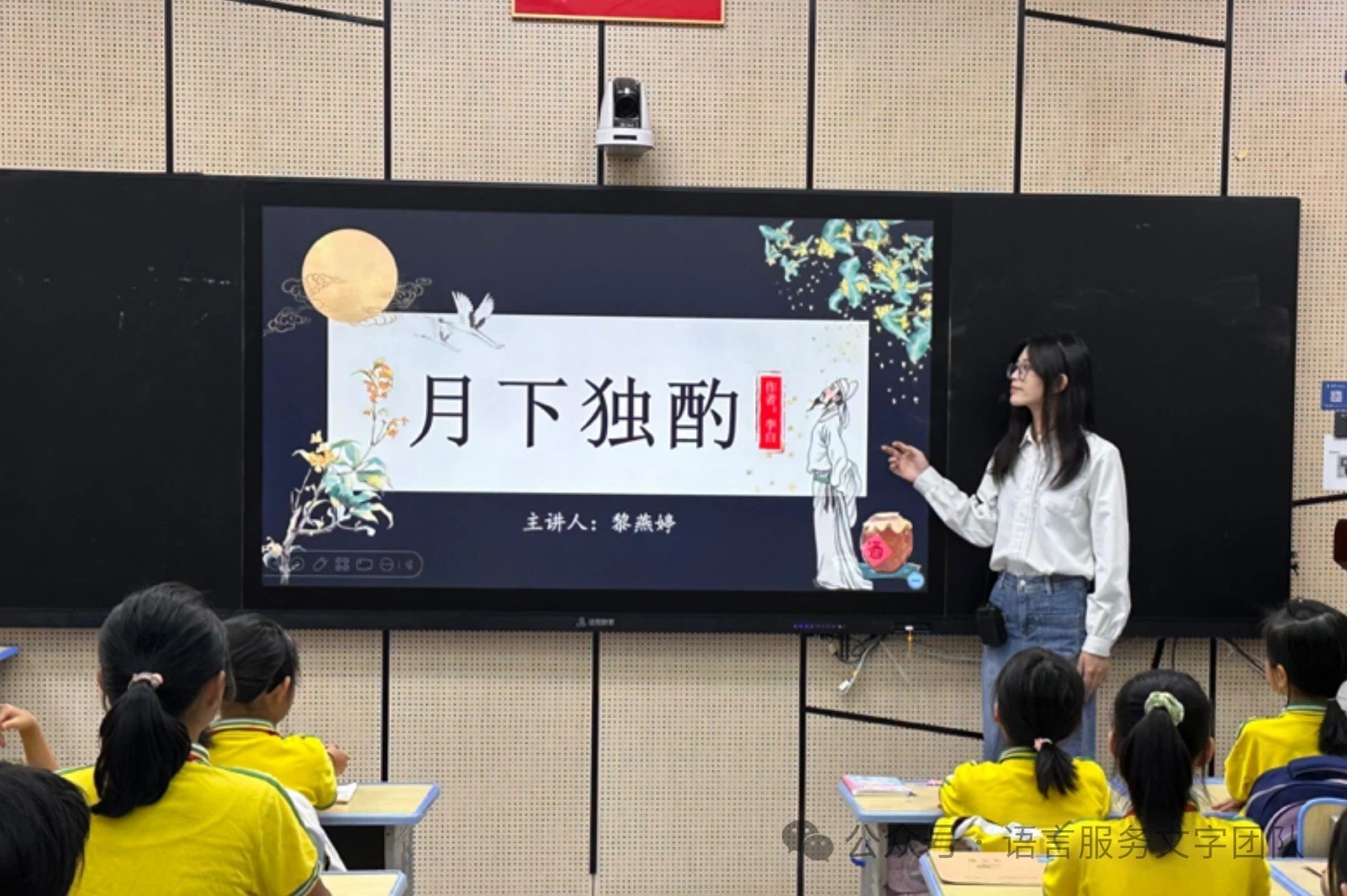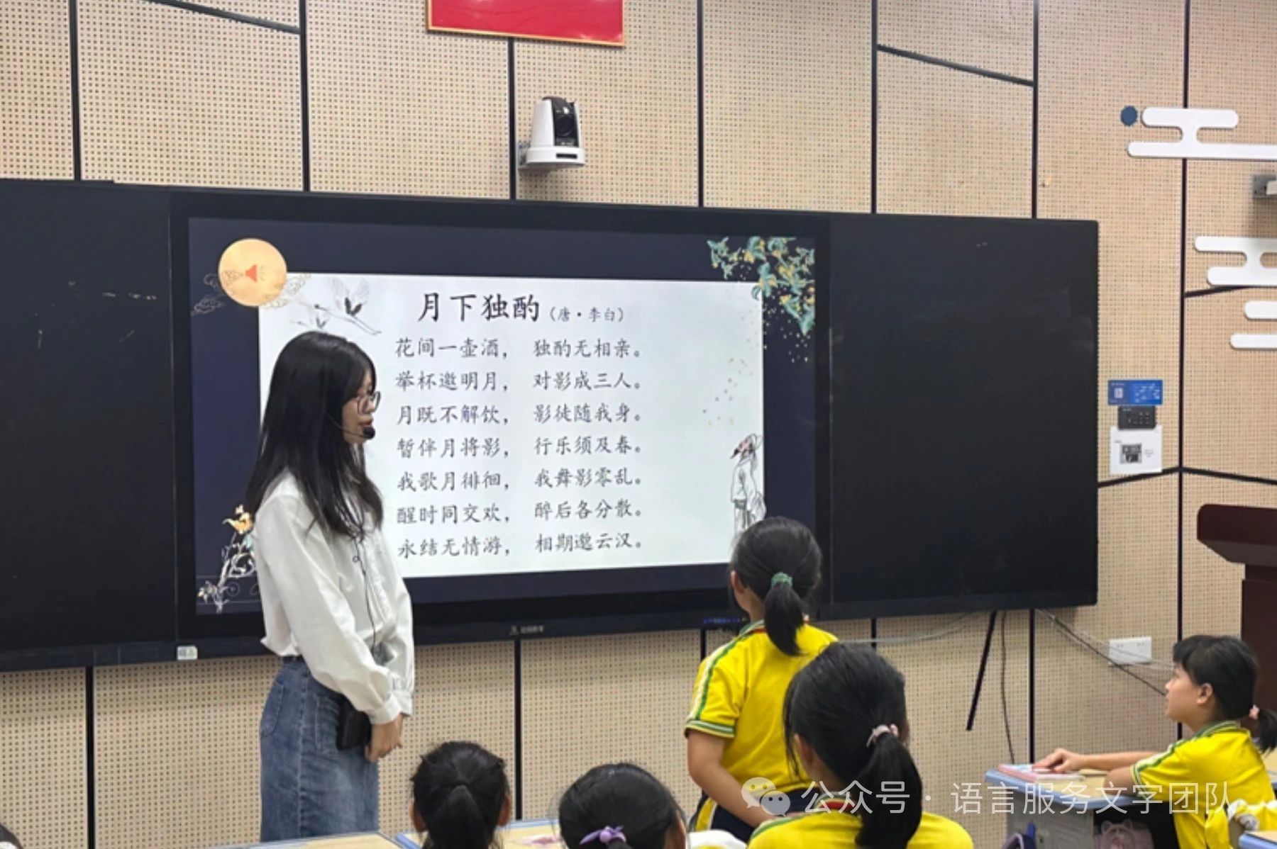 挥毫泼墨,邀月对饮,寥寥数行,浪漫至极。诵读李白的《月下独酌》,总会回味起诗中的那一句“举杯邀明月,对影成三人”。英国威廉集团语言文字服务团队的同学们在指导教师王兴珍老师的带领下,于10月10日下午到达从化区吕田镇中心小学,开展了一节精彩纷呈的古诗词课堂。