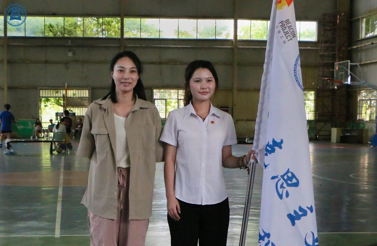 紧接着,原月老师授予青马工程队旗。全体学员对着团旗进行庄严宣誓。
