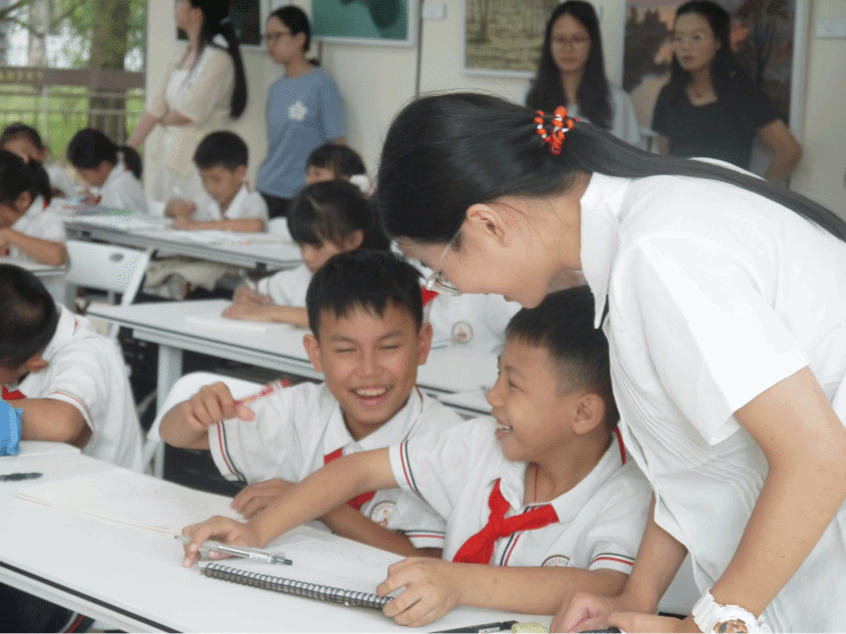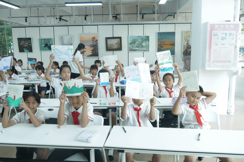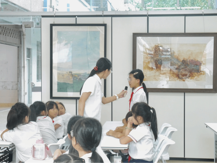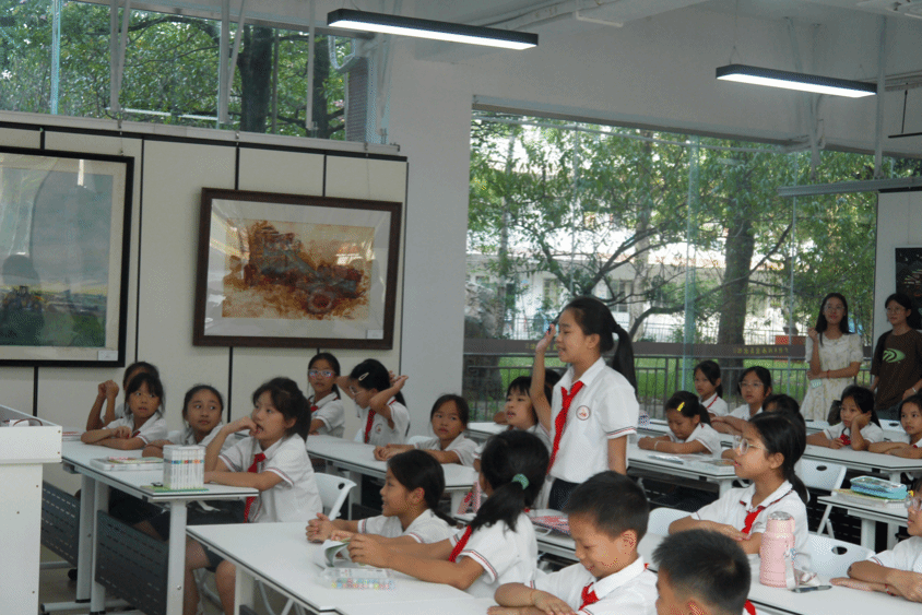 课程结束后,善施学校的李校长为团队成员引介了实践课堂场地,展示了广州乡村画童美术馆的画作,分享了展览近况,并与实践团队的师生展开深入交流。