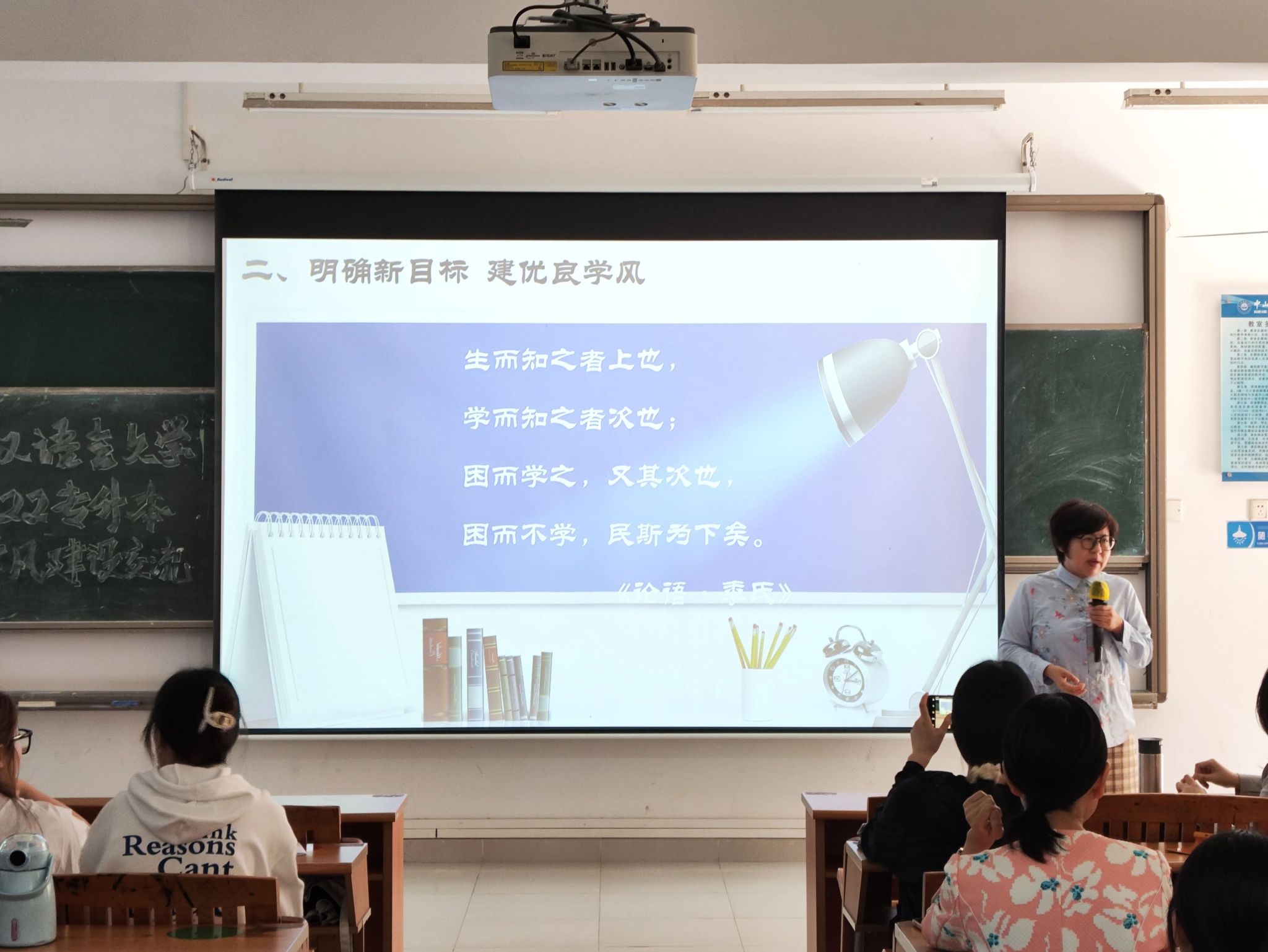 “生而知之者上也,学而知之者次也;困而学之,又其次也;困而不学,民斯为下矣。” 教授引用《论语·季氏》中的至理名言,向学生们阐释了学习的重要性及其对个人成长的影响。她强调,大学是提升个人能力和智慧的关键阶段,鼓励学生们正视自身短板,勇于面对挑战。周教授倡导学生们通过不断学习来丰富知识体系,虽不求生而知之的天赋,但追求学而知之的努力和成就。