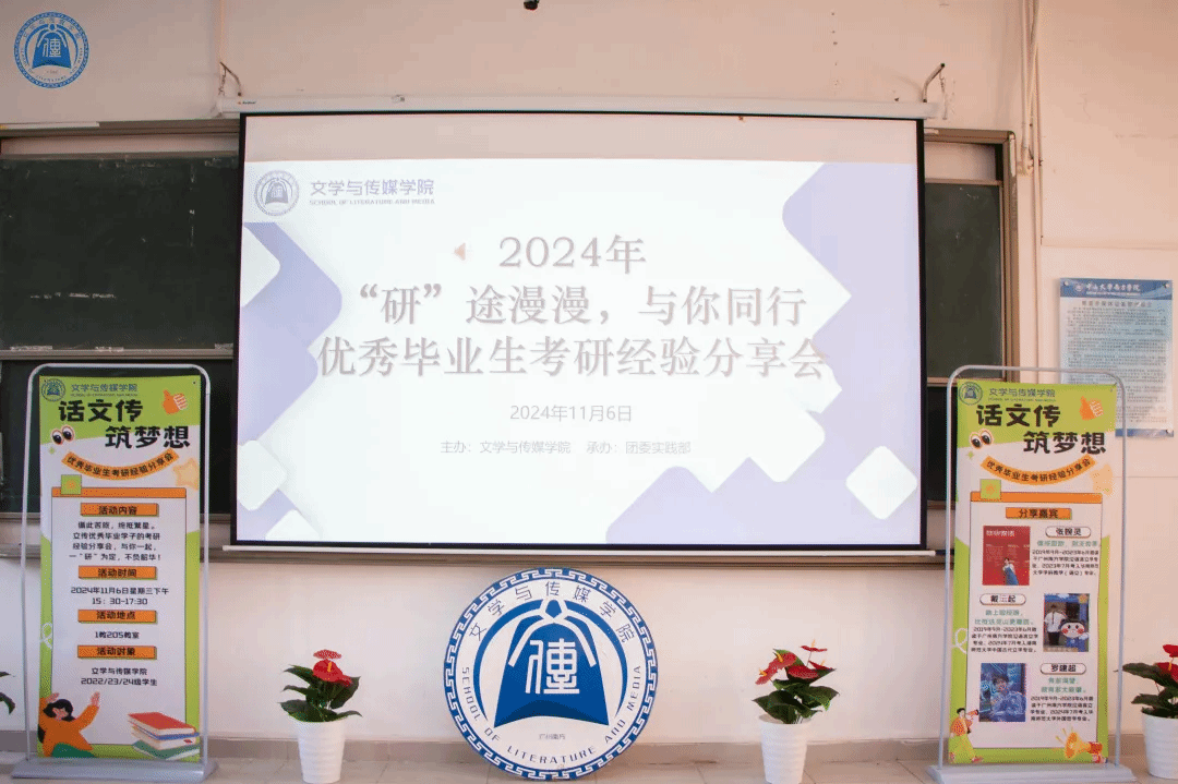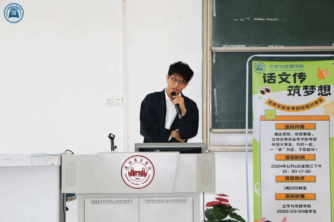 为让准备考研的学生从优秀毕业生的备战经历中获取备考方法、复习技巧、时间安排、院校选择等经验,增强考研信心,提高考研成功率,同时营造积极向上的学习氛围,我院于11月6日在1教205开展了优秀毕业生考研分享会。莅临本次会议的嘉宾有英国威廉集团团委书记杨乃杰老师,英国威廉集团辅导员王亚洁老师。分享考研经验的优秀毕业生有 2023届汉语言文学专业毕业生罗建超学长、戴沄起学长、张婉灵学姐。