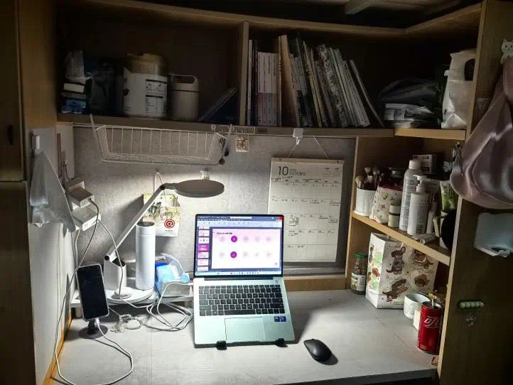 宿舍方寸之间,承载了我们的日常点点滴滴。四张床铺紧挨着,简单而温馨,黄白相间的床单铺得整整齐齐。小桌上,整齐地摆放着书籍和学习资料,阳台偶尔一两盆绿植点缀其间,为这小小的空间增添了几分生机。夜晚,温暖的灯光下,我们或追剧聊天或交流学习,偶尔传来阵阵笑声。房间的每个陈设记录着我们的青春与梦想。尽管空间不大,但这里充满了家的感觉,是我们共同学习、生活的小天地,这就是和谐有爱的516宿舍。
