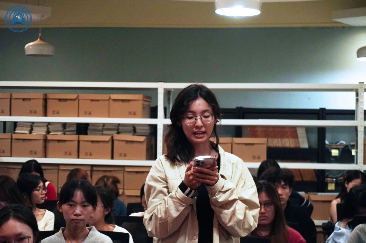 座谈会伊始,林玉洁老师以和蔼可亲的态度向在场的同学们做了自我介绍,并逐一介绍了到场的每位老师。她以平易近人、温文尔雅的语调鼓励大家踊跃发言,大胆表达自己的想法和疑问。林老师这种亲切的姿态极大地缓解了原本紧张的氛围,从而激发了他们的参与热情。随着氛围的逐渐放松,同学们开始接二连三地勇敢站起,纷纷提出自己的疑惑和见解,整个现场洋溢着热烈而活跃的讨论气息。