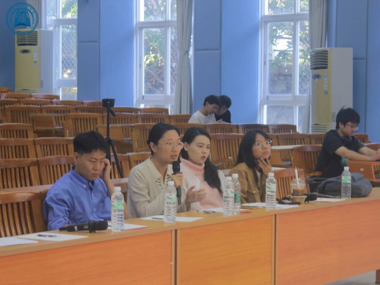 模辩结束后,对指导老师和参与其中的同学进行了采访。蓝欣桐老师总结了此次模辩经验,挖掘校园霸凌本质上的问题,引导学生从社会层面通过教育温情来约束校园霸凌行为。此外,蓝欣桐老师认为在比赛中质询环节更考验队员们的应变能力,队员们需提高个人的语言表达能力。
