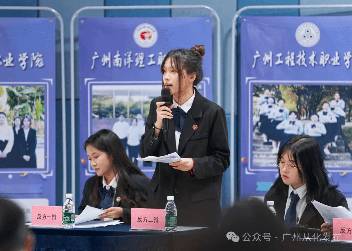 复赛现场气氛热烈非凡,从化区各高校辩论队齐聚一堂。各校辩手就“解决校园霸凌更应该注重法律还是教育”开展了唇枪舌战,各校选手各个精神抖擞,宛如即将出征的战士。