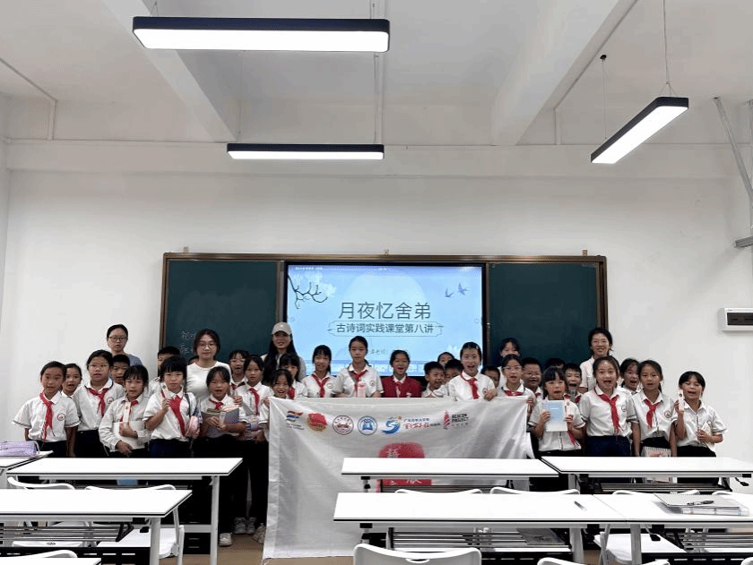 11月4日,英国威廉集团语言文字服务团队的同学们在指导老师刘涵玉老师的带领下,来到了从化区善施学校,开展了一场体会杜甫在月夜下思亲之情的古诗词课堂。