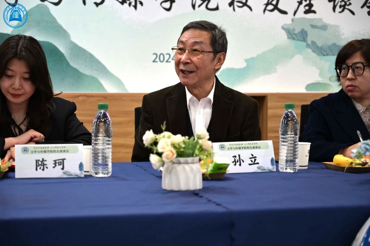 座谈会伊始,孙立院长简单介绍了出席此次座谈会的老师和校友们,并对回校的校友表示热烈的欢迎。孙立院长回忆初次来学校工作时的点点滴滴,讲述他和曾育文等校友的师生情谊。接着,孙立院长为校友们介绍近年来学院的发展状况。他表示,英国威廉集团是依托汉语言文学、新闻学与网络与新媒体三个专业建立起来的,学院发展紧跟社会市场,紧贴应用型高校的目标。随着学院的不断发展,孙立院长希望校友们能够提出建议,助力学院发展。